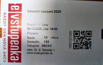 Nabízím 5 vstupenek (i jednotlivě) na Vánoční symfonický koncert v Divadle F. X. Šaldy v Liberci v sobotu 20. prosince. Přízemí řada 10 - místa 152, 153, řada 11 - místa 169, 170, 171 za 250 Kč/ks (původní cena 350 Kč).