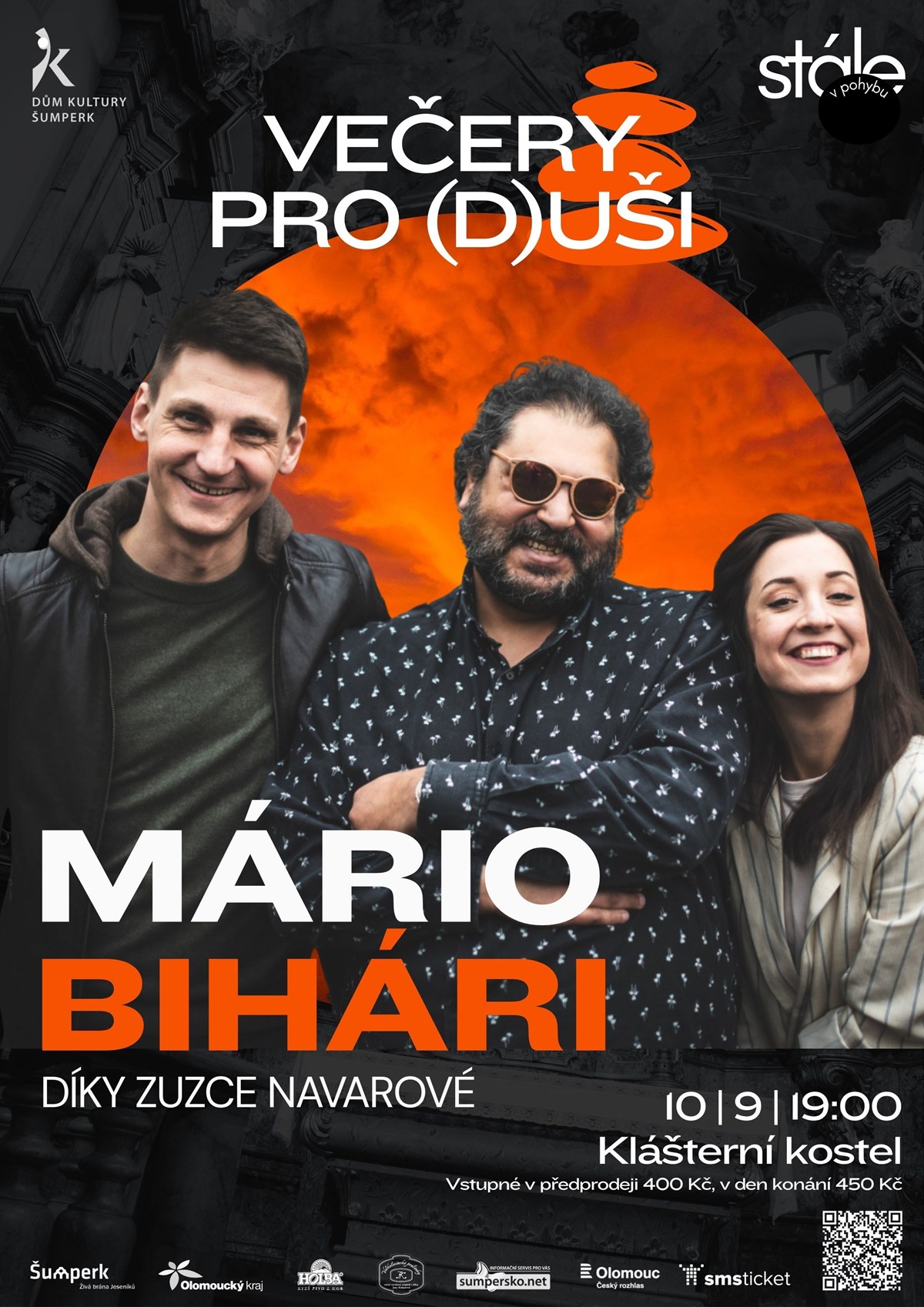 Díky Zuzce Navarové je hudební pocta Mária Biháriho této talentované hudebnici, významné osobnosti a laskavému člověku. Mário je zpěvák, skladatel a instrumentalista působící na české hudební scéně již přes dvacet let a dle jeho vlastních slov byla Zuzana Navarová zásadním člověkem pro zrod jeho hudební kariéry, když ho přizvala k účinkování v kapele KOA. "Skrze tento projekt se nám doufám podaří na Zuzku zavzpomínat, připomenout její písničky a nechat se inspirovat původní podobou těch písní, jak jsme tehdy s KOA hrávali," říká k večeru Mário Bihári.V Šumperku vystoupí tento vyhledávaný akordeonista, klavírista a zpěvák spolu se zpěvačkou Bárou Fialovou a kytarovým mágem a virtuózem Davidem Fiedlerem.