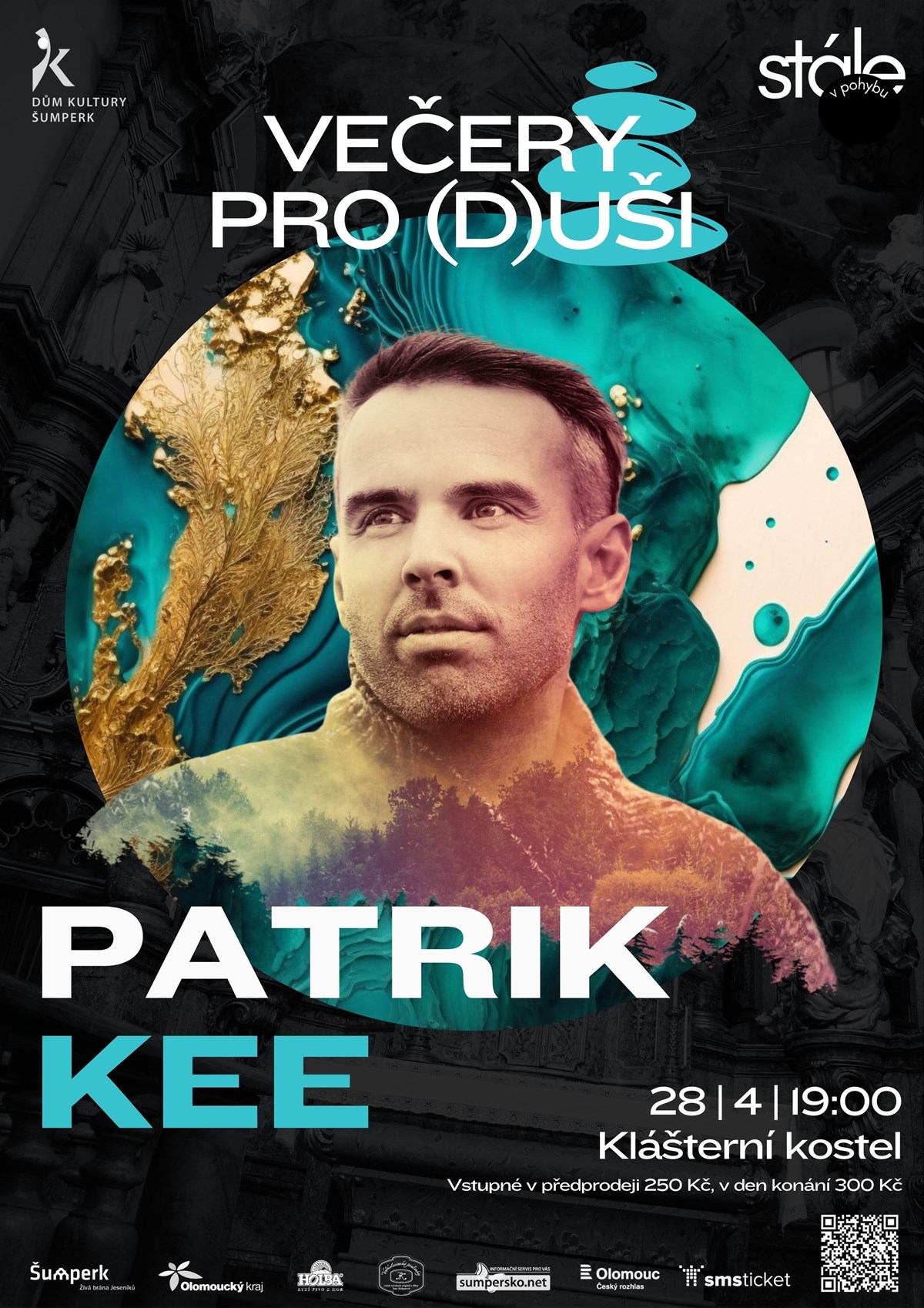 Mimořádný hlas Patrika Kee jsme mohli slyšet v pořadech Jaroslava Duška. Rozezněl chrámy v Praze, Litomyšli nebo Mladé Boleslavi. K výjimečnému programu Vesmíření ho také přizvala planetária v Brně a Ostravě. Patrik se věnuje živé vokální improvizaci a vytváří tak pomocí hlasu, který nahrává a vrství na nástroj zvaný loopstation až orchestrálně vesmírné skladby. Toto všechno umocněné akustikou klášterního kostela slibuje nezapomenutelný zážitek lahodící našim duším i uším. Přijďte s námi sdílet i ovlivňovat neopakovatelné hudební dílo, které bude vznikat přímo na místě.