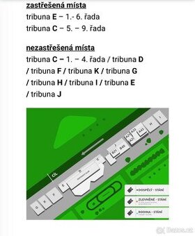 Lístky jsou na tribunu C k sezení pod střechou. Tyto místa jsou již vyprodaná.