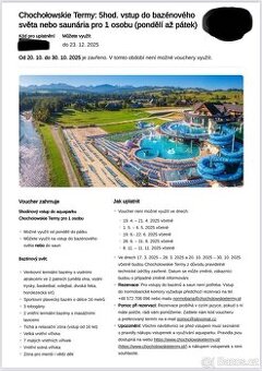 Prodám 8 voucherů do Chochołowskie Termy. Cena 250 za kus při odběru všech 8. Jednotlivá cena 350,- Vstup je na 5 hodin. Platnost do konce roku 2025. Kousek od krásného města Zakopane s výhledem na Vysoké Tatry.