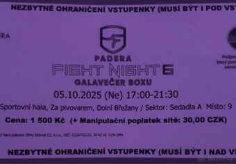 Prodám 2x vstupenku na Fight Night cena 900kč/kus last minute