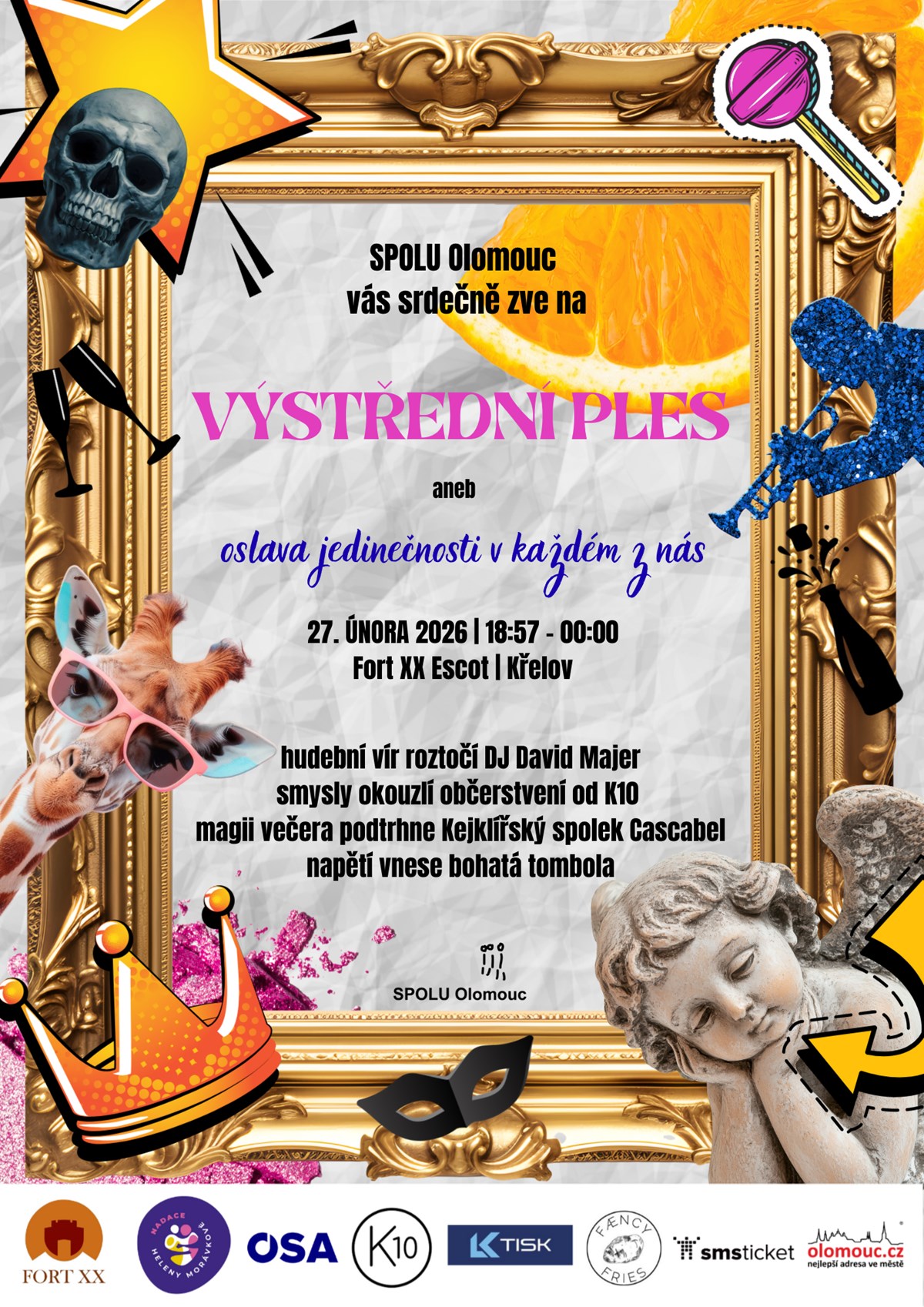 Srdečně Vás zveme na Výstřední ples SPOLU Olomouc, který bude oslavou jedinečnosti v každém z nás. Odhoďte zábrany a konvence. Proměňte se v bytost, která ve vás dřímá. Oslňte, překvapte, zaskočte, vyveďte z míry... Odvažte se a přijďte si užít luxus i dekadenci, vkus i kýč, barvy i temno. Bude to bláznivé, krásné a nezapomenutelné. Těšíme se na vás!