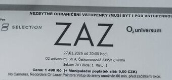 Prodám dva lístky na francouzskou zpěvačku ZAZ, nemůžeme se zúčastnit kvůli nemoci. Sektor 203, Řada 1, Místo 1 a 2. Původní cena 1490 Kč za lístek, prodám za 2400 za oba.